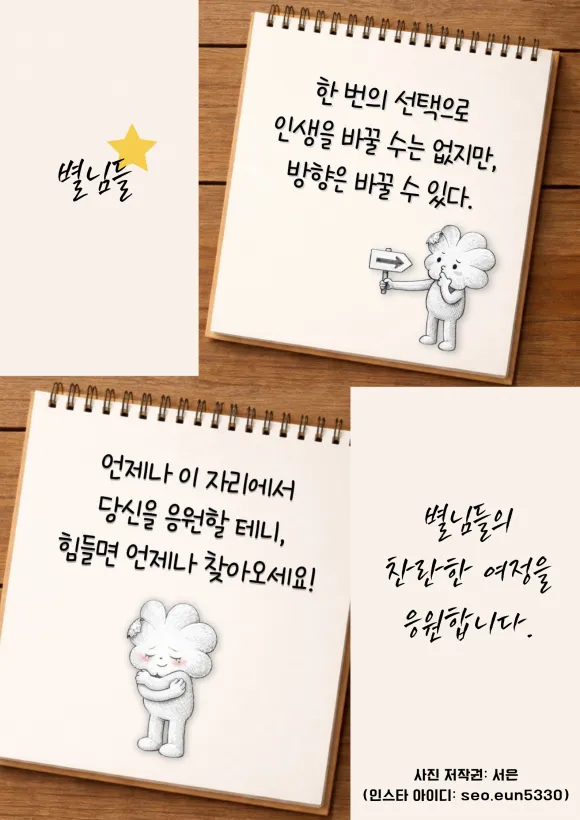 저는 우리 내담자 여러분이 늘 같은 밝기로 반짝반짝 빛나길 바랍니다. 그래서 우리 내담자님들의 별칭을 언제부터인가 별님으로 하고 있어요😉