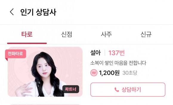 속마음 / 애정운 / 재회운 / 금전운 / LGBT / 사업운 / 속궁합