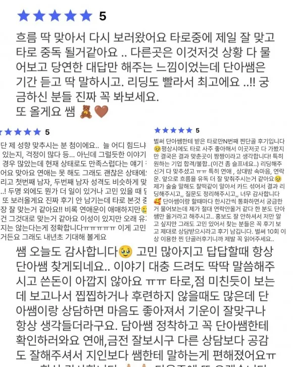 여러가지 카드로 상황흐름, 직관으로 많이 보기 때문에 조용한 공간에서
